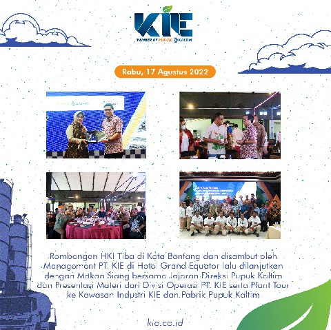 Rabu, 17 Agustus 2022. Rombongan HKI Tiba di Kota Bontang dan disambut oleh Management PT. KIE di Hotel Grand Equator lalu dilanjutkan dengan Makan Siang bersama dan Presentasi Materi dari Divisi Operasi PT. KIE serta Plant Tour ke Kawasan Industri KIE dan Pabrik Pupuk Kaltim.
